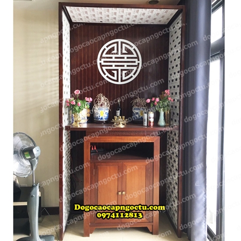 Tủ thờ hiện đại gỗ gõ đỏ 127x61x127 và CNC phòng thờ kiểu dáng hiện đại cho chung cư